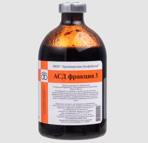 ASD fraction 3 is a tissue preparation. It is obtained by dry distillation of animal tissues. The drug enhances the body’s immunity, has a pronounced antiseptic effect, stimulates the activity of the reticuloendothelial and endocrine systems, normalizes trophism, accelerates the regeneration of damaged tissues, and does not have a cumulative effect.